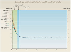 الأقصى في مدة تتراوح بين عقد وعقدين (450 جزءا في المليون) وقرن تقريبا
