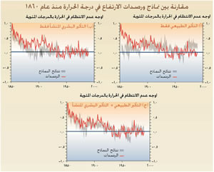 الحرارة (1860-2000، اللوحة العلوية)، ويعد هذا ارتفاعا غير مسبوق، على