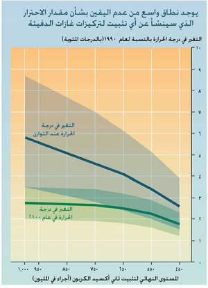 وهكذا، بالرغم من أن جميع الصور البيانية لتثبيت تركيز ثاني أكسيد الكربون