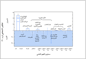 الشكل 3: عوامل خارجية كثيرة تكمن وراء تغير المناخ. هذه التأثيرات الإشعاعية تنجم عن التغيرات الطارئة على تركيب الغلاف الجوي وتغير معامل انعكاس السطح بسبب استخدام الأراضي وتغير إجمالي الإشعاع الشمسي. وباستثناء التغير الشمسي فإن بعض أشكال النشاط البشري مرتبط بعضها بالبعض الآخر. وتمثل الأعمدة المستطيلة تقديرات الإسهامات النسبية للتغيرات في هذه التأثيرات الإشعاعية حيث إن بعضها يؤدي إلى الاحترار والبعض الآخر إلى التبريد. أما التأثير الإشعاعي الناجم عن الانبعاثات الصادرة عن البراكين، والتي تؤدى إلى تأثير إشعاعي سالب يستمر لبضع سنوات، فغير مبين. والأثر غير المباشر للأهباء الجوية يتمثل في أثرها على عمر السحب، والذي يؤدي أيضا إلى حدوث تأثير إشعاعي سالب. وأدرجت تأثيرات الطيران على غازات الدفيئة في الأعمدة المختلفة وبعض التأثيرات الإشعاعية يكتنفها قدر من اليقين أكبر بكثير من ذلك الذي يكتنف البعض الآخر. ويشير الخط العمودي حول الأعمدة المستطيلة إلى تقدير نطاق عدم اليقين وهو يسترشد، في معظم الحالات، بمدى قيم التأثيرات الإشعاعية المنشورة. ويبين الخط العمودي الواقع خارج العمود المستطيل وجود تأثير إشعاعي يتعذر إعطاء أي تقدير مركزي بشأنه نتيجة ل وجود أوجه عدم يقين كبرى. ويختلف المستوى العام للفهم العلمي لكل تأثير إشعاعي اختلافا كبيرا كما أشير إلى ذلك. وبعض عوامل التأثيرات الإشعاعية متداخلة جيدا في جميع أنحاء العالم مثل ثاني أكسيد الكربون مما يؤدي إلى إدخال الاضطراب على التوازن الحراري العالمي. وتمثل العوامل الأخرى اضطرابات تكتسي سمات إقليمية أقوى نظرا لتوزعها المكاني مثل الأهباء الجوية. ولهذا السبب ولأسباب أخرى، فإن مجرد حساب الأطوال الموجبة والسالبة للأعمدة لا يمكن أن ينتج الأثر الصافي على النظام المناخي. بل على العكس فإن التأثيرات الإشعاعية المقدرة كميا بشكل أفضل (مثل غازات الدفيئة الممزوجة جيدا والأوزون والأهباء الجوية الكبريتية والتأثير الإشعاعي الشمسي) قد أدرجت في النماذج المناخية. وتشير عمليات المحاكاة في تقرير التقييم هذا (الشكل 5 مثلا) إلى أن الأثر الصافي التقديري لهذه الاضطرابات أدى إلى احترار المناخ العالمي منذ عام 1750 حيث حدثت أشد الاضطرابات وبالتالي أشد الاحترار في القرن الماضي. [استنادا إلى الفصل السادس و الشكل 6-6] |