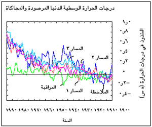 من النماذج على إنتاج اتجاهات احترار في درجة حرارة الجو السطحي في القرن العشرين