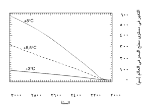 يحتمل فقد جزء كبير من مجموع الكتلة الجليدية. والأرجح كثيرا أن المناطق التي كان يغطيها الجليد بدرجة هامشية سوف تصبح خالية من الجليد.
