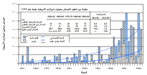 وقد أظهرت تكاليف الظواهر الجوية المتطرفة اتجاهاً تصاعدياً سريعاً في العقود القليلة الماضية. وارتفعت الخسائر الاقتصادية العالمية السنوية نتيجة للظواهر الجوية الكبرى من 3.9 مليار دولار أمريكي في السنة في الخمسينات إلى 40 مليار دولار أمريكي في السنة في التسعينات (كلها بقيمة الدولار الأمريكي في عام 1999 دون تعديل فيما يتعلق بتعادل القوة الشرائية). وقد حدث ربع الخسائر، تقريباً، في البلدان النامية. وقد ارتفعت النسبة المؤمن عليها من تلك الخسائر من مستوى لا يذكر إلى 9.2 مليارات دولار أمريكي في السنة خلال الفترة ذاتها. وإذا ما تمت مراعاة الظواهر الجوية من كل الأحجام فإن إجمالي هذه الخسائر يتضاعف (انظر الجدول 5- الملخص الفني). وقد ارتفعت تكاليف الظواهر الجوية بسرعة على الرغم من الجهود الهامة والمتزايدة المبذولة لتقوية البنية الأساسية وتعزيز التأهب لمواجهة الكوارث. وتؤدي هذه الجهود إلى التوهين بدرجة غير معروفة من الارتفاع المرصود في تكاليف الخسائر على الرغم من أن الكتابات التي تحاول الفصل بين القوى المحركة الطبيعية والقوى المحركة البشرية لم تعمد إلى تحديد هذا الأثر كمياً. وكعلامة على تزايد سرعة تأثر صناعة التأمين فإن نسبة الممتلكات الإجمالية/ أقساط التأمين على الخسائر إلى الخسائر المتعلقة بالظواهر الجوية، وهي مؤشر هام على القدرة التكيفية، علما بأنها قد تدنت بمقدار ثلاثة أمثال في الفترة ما بين عامي 1985 و 1999.[الفقرة 8-3]