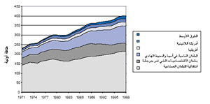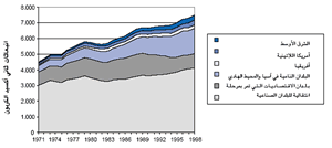 الشكل 4: انبعاثات ثاني أكسيد الكربون في العالم بحسب الإقليم 1971-1998. |