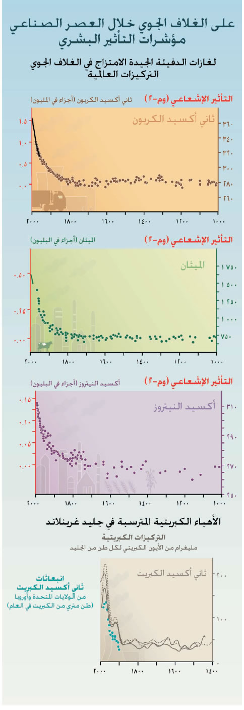2-1: سجلات التغيرات السابقة في تركيب الغلاف الجوي خلال الألفية الماضية تظهر