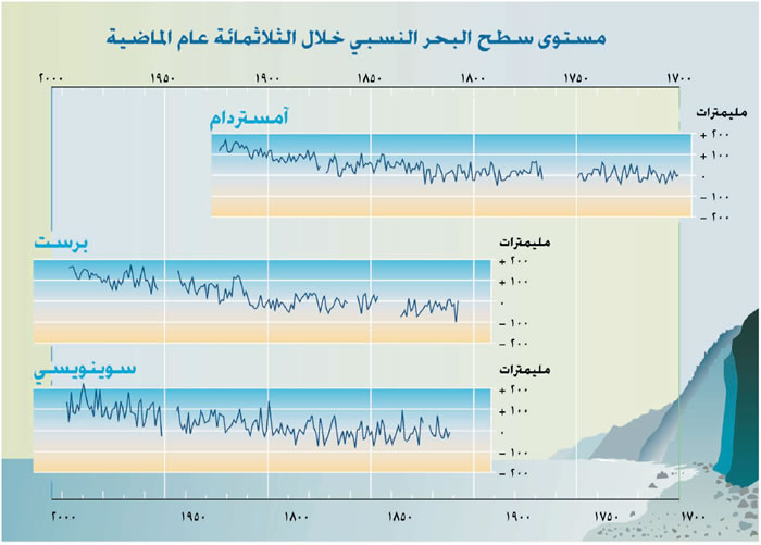 وغيرها من المواقع، تؤكد تسارع الارتفاع في مستوى سطح البحر خلال القرن العشرين