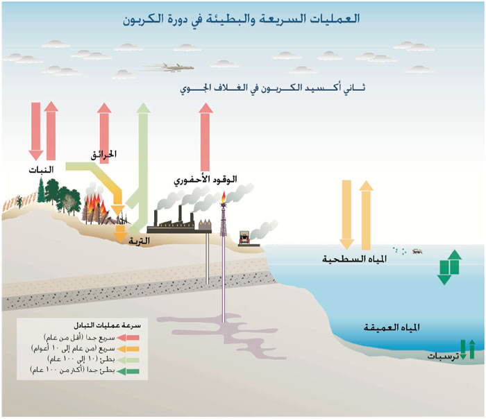 5-4: تفضي مجموعة النطاقات الزمنية للعمليات الرئيسية في دورة الكربون