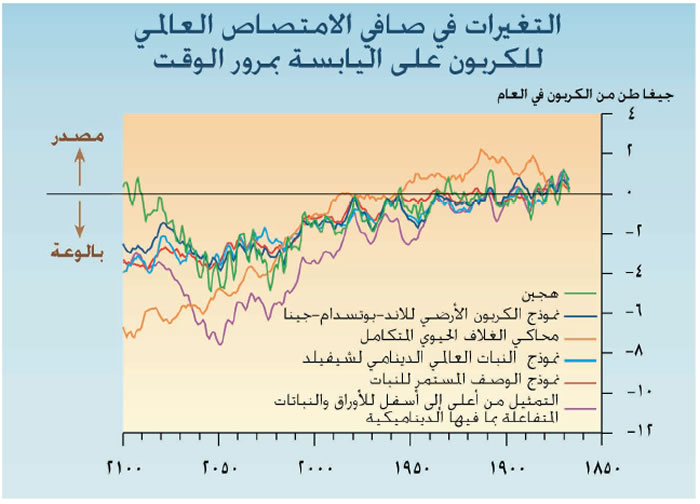 امتصاص الكربون على اليابسة لعدة عقود ثم ثباته أو انخفاضه في القرن الحادي