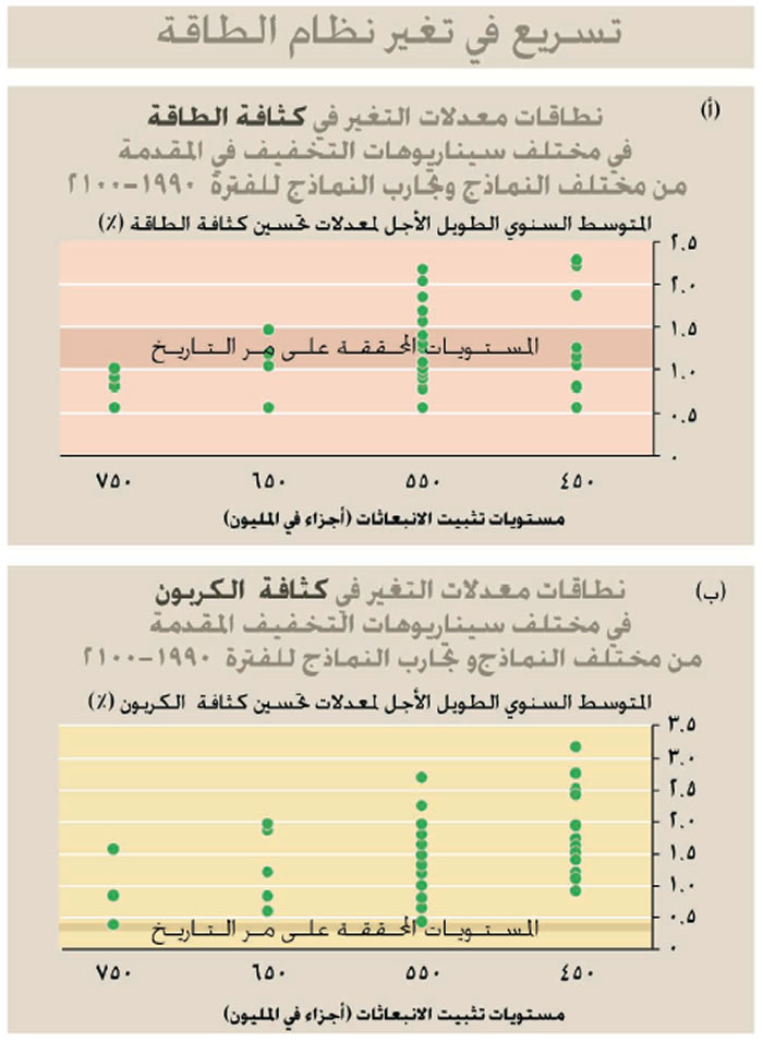 5-7: (أ) معدل التخفيض المطلوب في كثافة الطاقة (الطاقة لكل وحدة من الناتج
