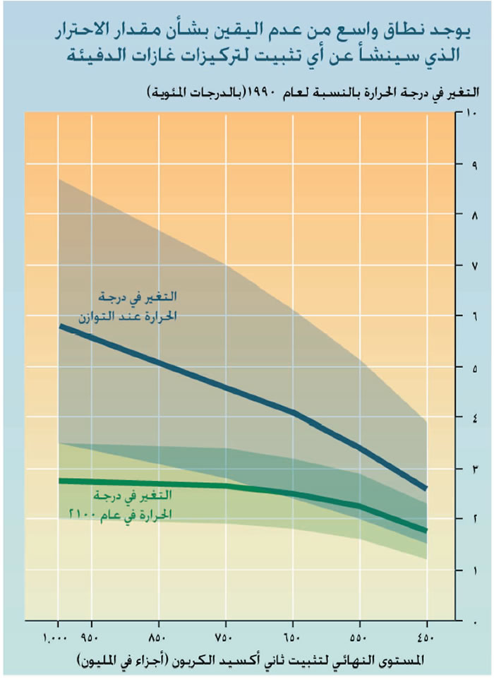لعام 1990 في (أ) عام 2100 و (ب) عند التوازن يتم تقديرها باستخدام نموذج
