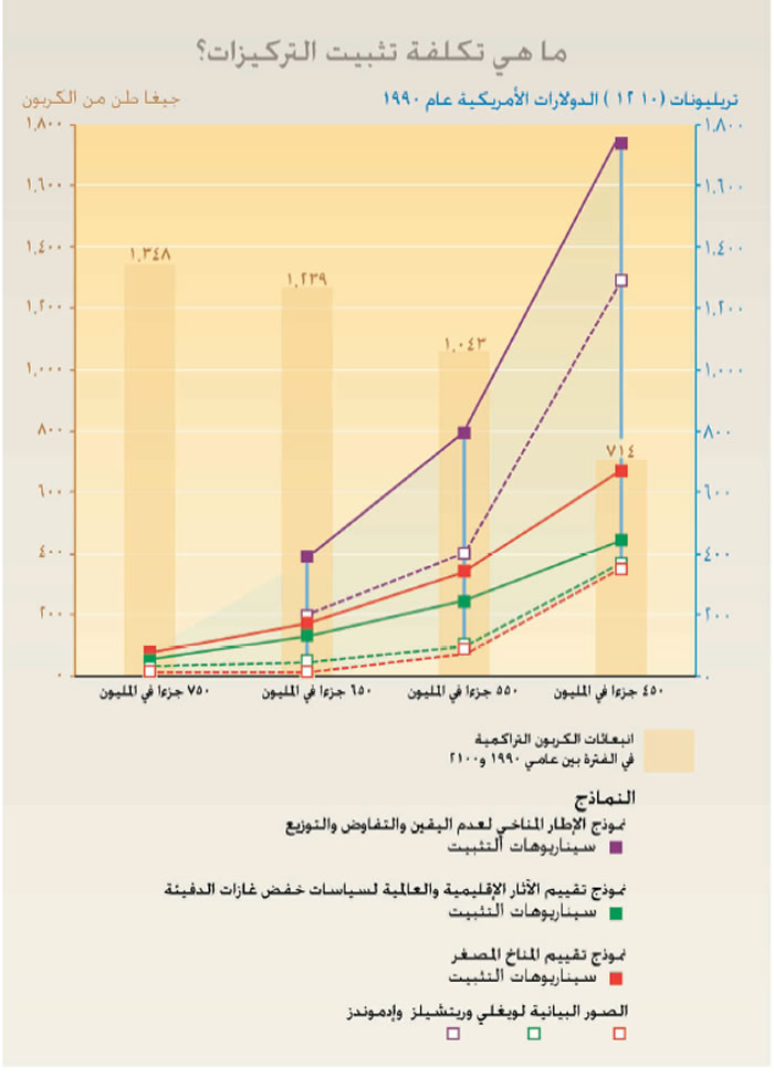5% لكل عام للفترة الممتدة من 1990 إلى 2100) لتثبيت تركيزات ثاني أكسيد