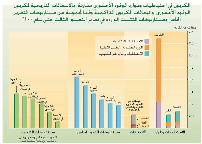 في تقرير التقييم الثالث حتى عام 2100. وتظهر بيانات الاحتياطيات
