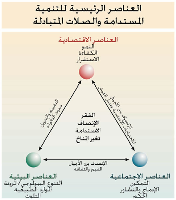 8-3: تمثل رؤوس المثلث الأبعاد أو الميادين الرئيسية الثلاثة للتنمية