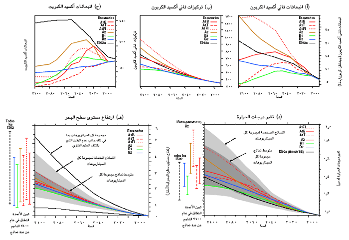 هذه النماذج لسلسلة السيناريوهات. ويلاحظ أن الاحترار وارتفاع مستوى سطح البحر