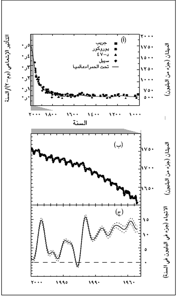 11: (أ) التغييرات فى تركيز الميثان (كسر جزيئى، بالجزء في البليون= 10-9)