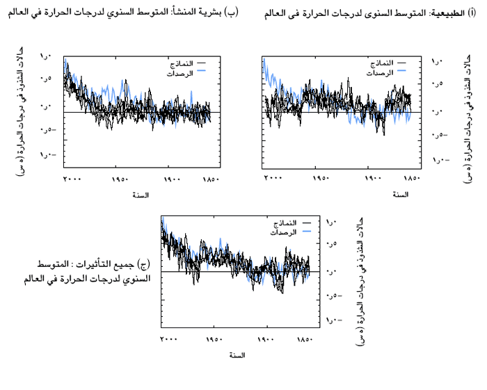 شمسية وبركانية فقط (ب) بتأثيرات بشرية المنشأ بما في ذلك غازات الدفيئة