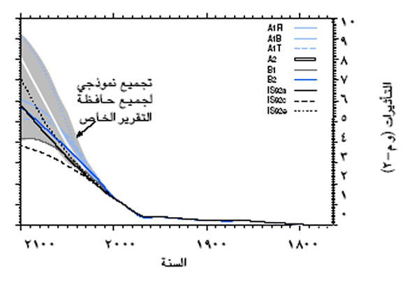 للغلاف الجوي والمحيطات كما ترد تأثيرات IS92a,IS92c,IS92e باتباع نفس طريقة الحساب.