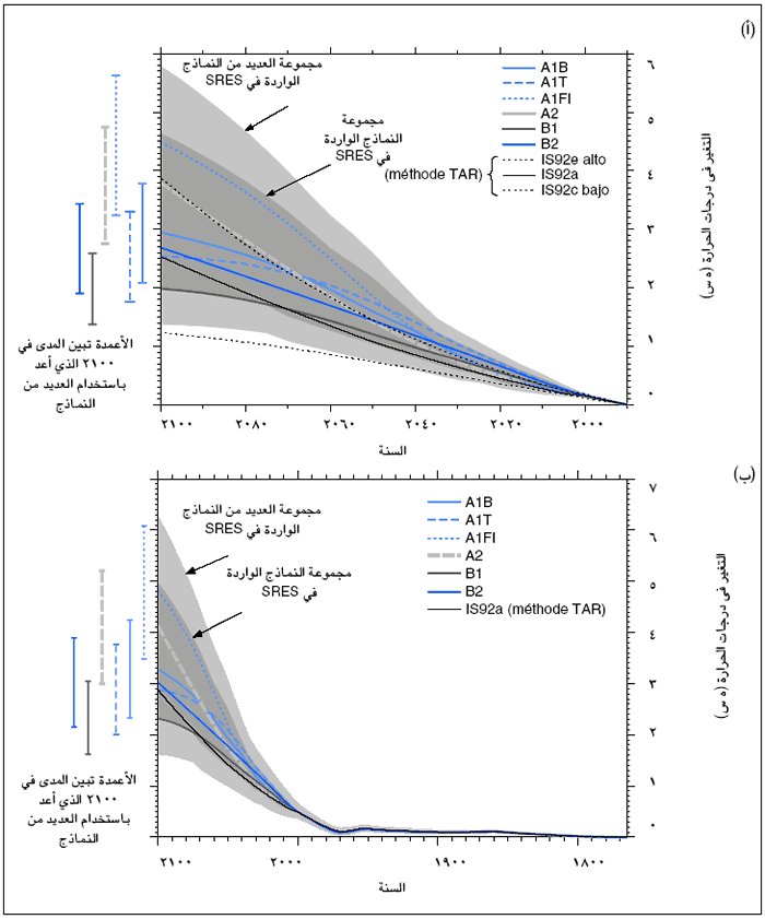 الكاملة للسيناريوهات البالغ عددها 35 الواردة في تقرير SRES باستخدام متوسط نتائج