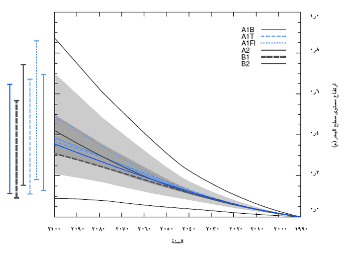 فتبين مدى جميع نماذج الدوران العام والسيناريوهات بما في ذلك عدم اليقين المحيط