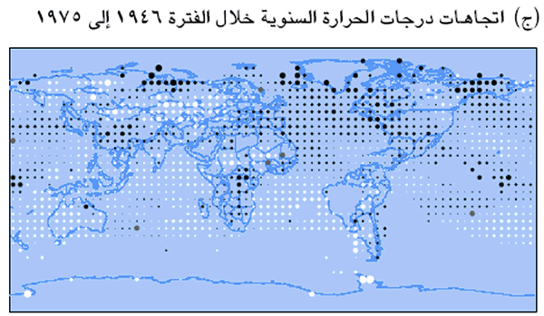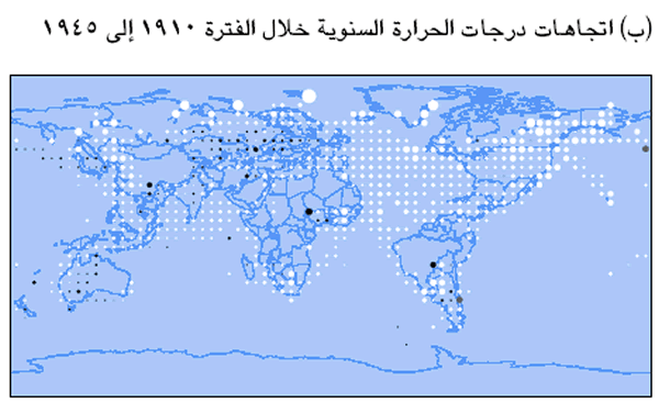 3: اتجاهات درجات الحرارة السنوية للفترات 1901 إلى 1999 و 1910 إلى 1945 و1946