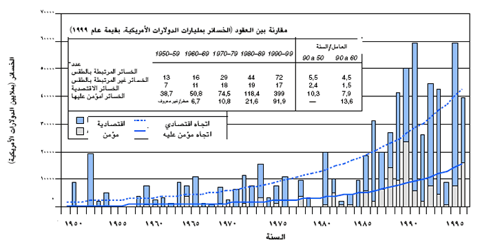 صعودياً سريعاً في العقود القليلة الماضية. إذ ارتفعت الخسائر الاقتصادية