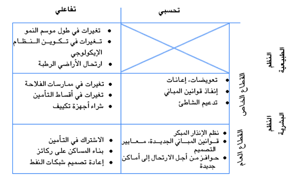 أنواع التكيف مع تغير المناخ، أمثلة.