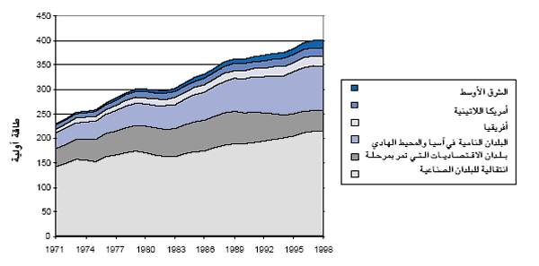 3: استخدام الطاقة الأولية في العالم بحسب الإقليم من 1971 إلى 1998 الشكل