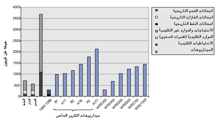 بما يبلغ 12000 جيغا طن كربون. وتبين أعمدة السيناريو كلا من السيناريوهات المرجعية
