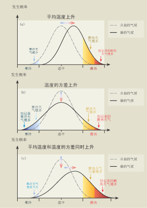 也可以通过明确的气候环流型的改变而使自身得到充分体现,这些变化会引起气候变量极端值的方差和频率发生改变 (见图4-1)。 |