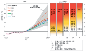 人类社会和自然系统对极端气候事件的脆弱性,已经从干旱、洪涝、热浪、雪崩和风暴等灾害所造成的损失、痛苦及死亡中得已证明。虽然对这些变化做出的预测还有不确定性,但由于气候的平均状况及变率的改变,21世纪一些极端事件发生的频率和/或严重程度还要增加,因此可以预计,随着全球变暧,这种影响的严重程度还要增大(见图SPM-2)。相反,寒潮等极端低温事件的发生频率和程度预计将减少,但会产生正面和负面的影响。未来极端气候事件变化的影响预计会对贫困人口产生巨大的影响。表SPM-1中,列出了未来气候变率和极端气候事件变化影响的一些典型例子。[3.5,4.6,6和7.2.4]
