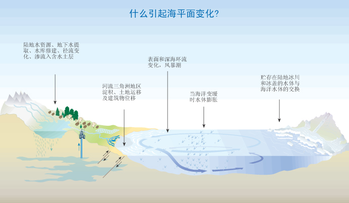在几十年到几世纪的时间范围内,一些对平均海平面变化影响最大的因素往往和气候及气候变化过程相联系。