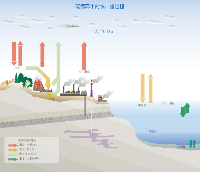 图5-4: 全球碳循环中主要过程的时间尺度范围