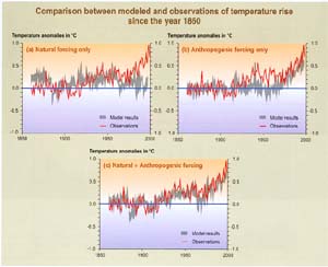 sulfate aerosols and natural factors (volcanoes and solar irradiance). The