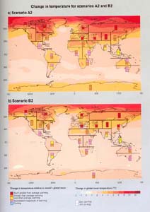 scenario A2 and (b) the SRES scenario B2. Both SRES scenarios show
