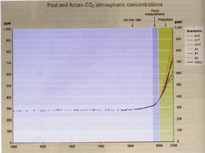 in the year 2100 between about 490 and 1,260 ppm (compared to the pre-industrial