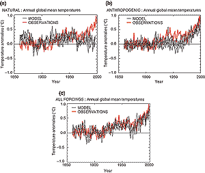 (a) with solar and volcanic forcing only, (b) with anthropogenic