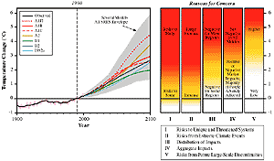 Natural systems can be especially vulnerable to climate change because of limited adaptive capacity (see Box SPM-1), and some of these systems may undergo significant and irreversible damage. Natural systems at risk include glaciers, coral reefs and atolls, mangroves, boreal and tropical forests, polar and alpine ecosystems, prairie wetlands, and remnant native grasslands. While some species may increase in abundance or range, climate change will increase existing risks of extinction of some more vulnerable species and loss of biodiversity. It is well-established6 that the geographical extent of the damage or loss, and the number of systems affected, will increase with the magnitude and rate of climate change (see Figure SPM-2). [4.3 and 7.2.1]