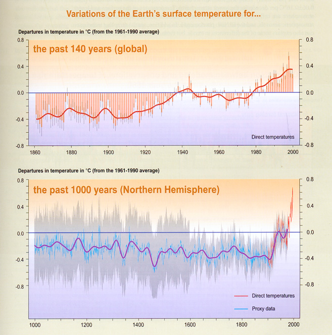 measurements (1860-2000, top panel) -- a rise that is unprecedented, at