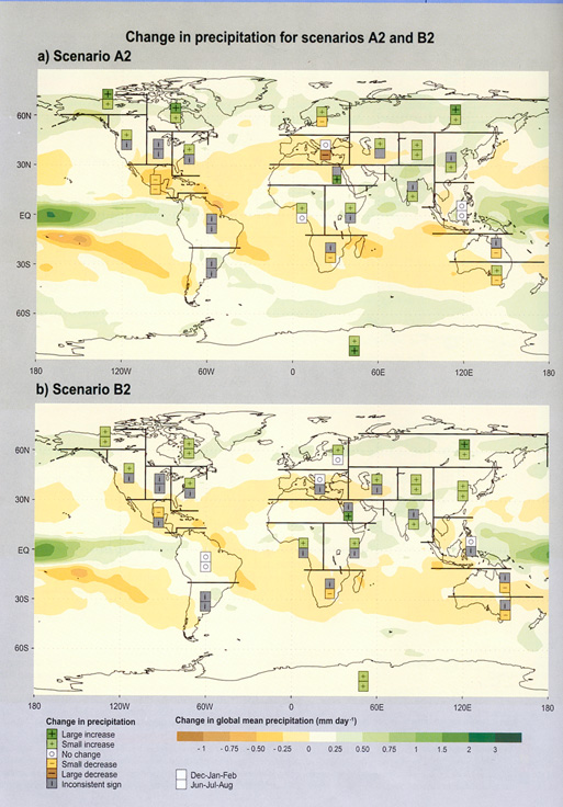 scenarios. The boxes show an analysis of inter-model consistency in regional precipitation