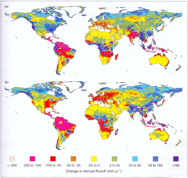 (a) HadCM2 ensemble mean and (b) HadCM3. Projected increases in runoff in high