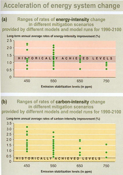 but (b) the required rate of improvement in carbon intensity (carbon emissions