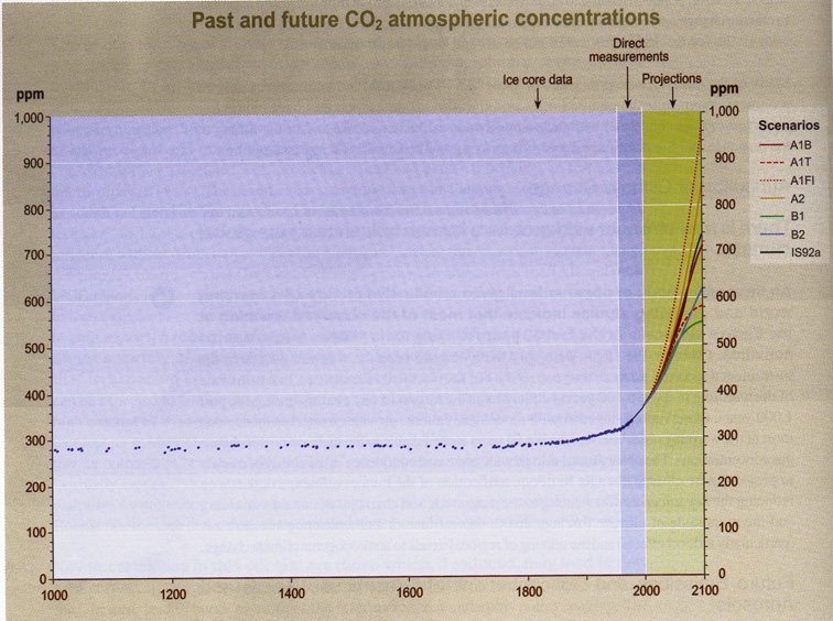 atmospheric CO2 concentration over the years 1000 to 2000 from ice