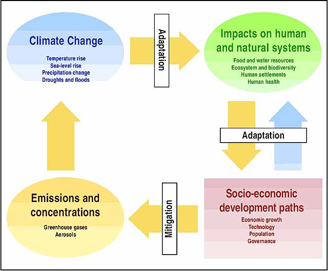 shown in the figure, while the blue arrow indicates the societal response to climate