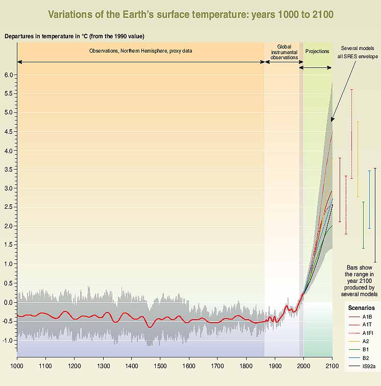 of the Earth's surface temperature: years 1000 to 2100. From year 1000