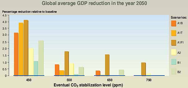 in GDP tends to increase with the stringency of the stabilization level, but the