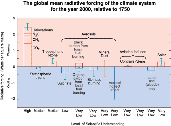 of these forcings - some of which yield warming, and some cooling. Forcing due
