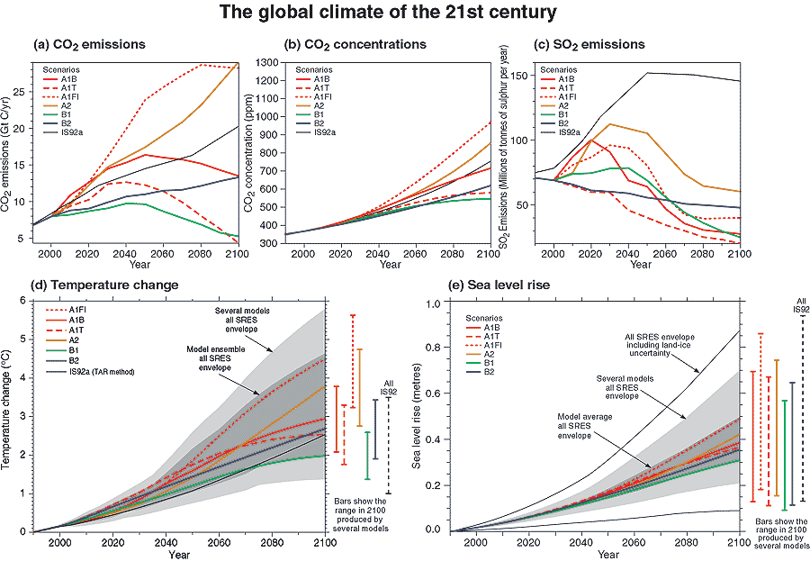 of the six illustrative SRES scenarios, which are summarised in the box on page