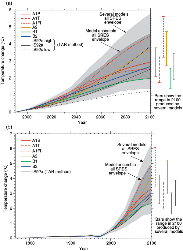 on all seven model projections (with climate sensitivity in the range 1.7 to 4.2°C).