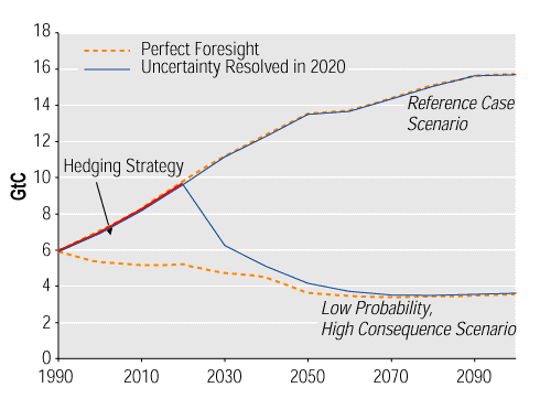 : Optimal hedging strategy for low probability, high consequence scenario using a cost-benefits optimization approach.
