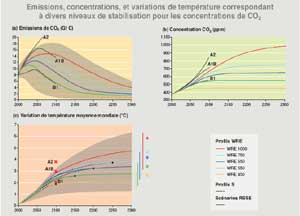 de réchauffement différentes pour chaque niveau de stabilisation du CO2. |